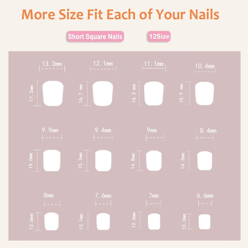 - [Package Contents]Our nude press on nails square comes with 24 pcs almond nail tip in 12 different sizes square nails to fit your each finger, each set package with 1x nail glue, 1x sheets jelly adhesive tabs, 1x double-sided nail file, 1x cuticle stick, 1x alcohol pad.