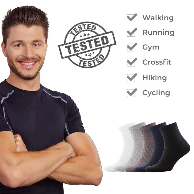 - Stylish, Premium Quality Quarter Socks – Crafted with soft rayon made from bamboo, these men’s quarter socks are cool and lightweight, and come with 5 pairs in every order.