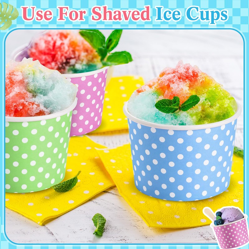 - Summer Ice Cream Cup Set: you will get 300 pieces of Polka Dot ice cream bowls, they are available in 6 different colors, 50 pieces for each color, plenty of quantity and design combinations to meet your summer Hawaiian party, pool party, ice cream party or other themed party