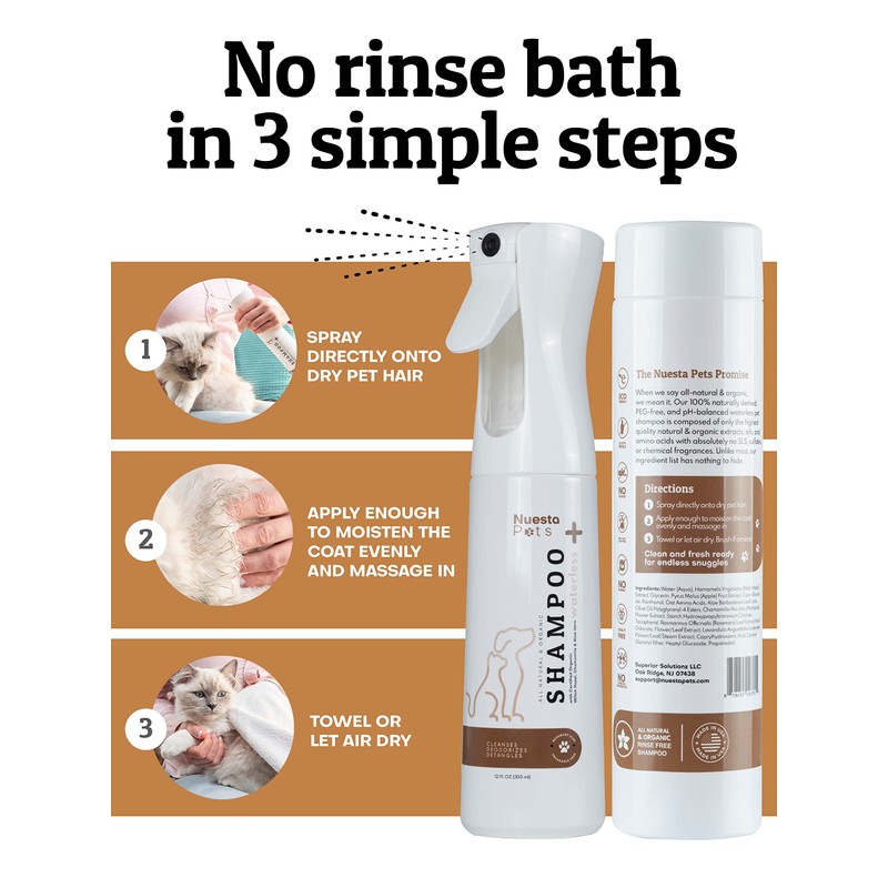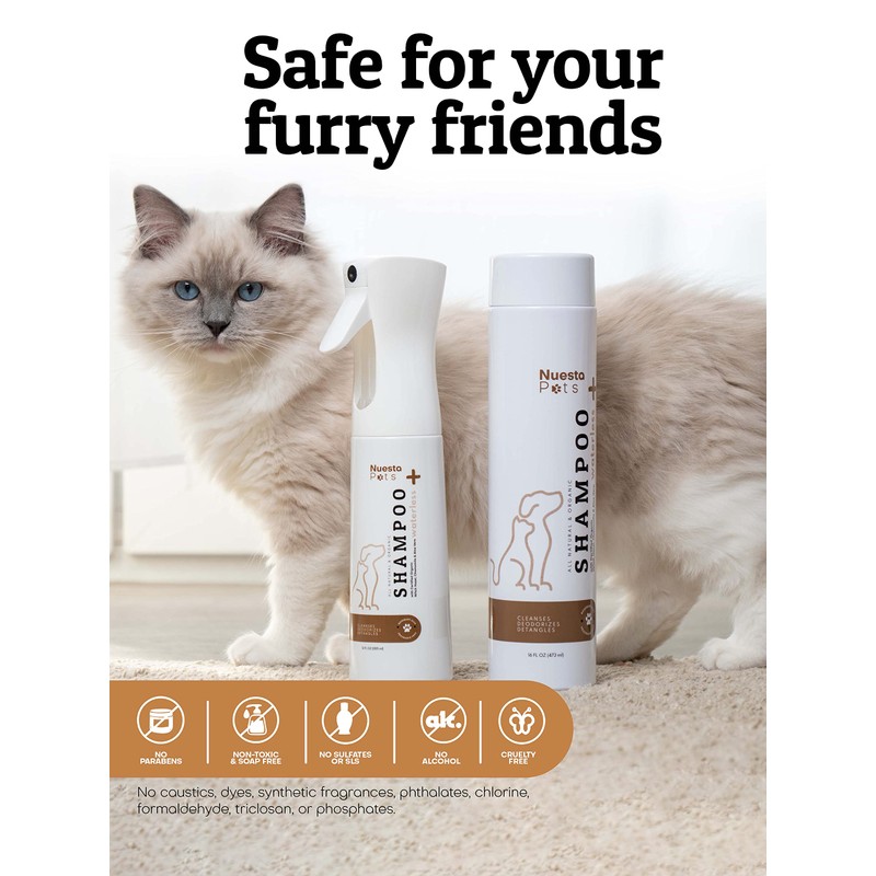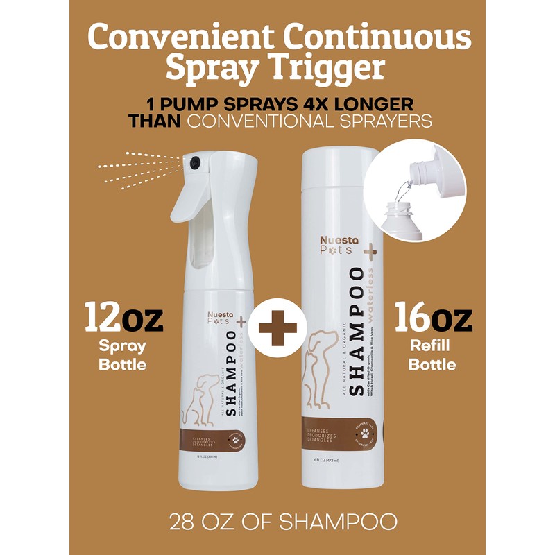 Nuesta Pets Hypoallergenic Waterless Shampoo | Oat & Aloe Formula for Dogs & Cats w/ Sensitive Skin | Easy Use 4 in 1 No-Rinse Pet Shampoo, Moisturizer, Conditioner, Deodorizer | Rinse Free Dog Bath