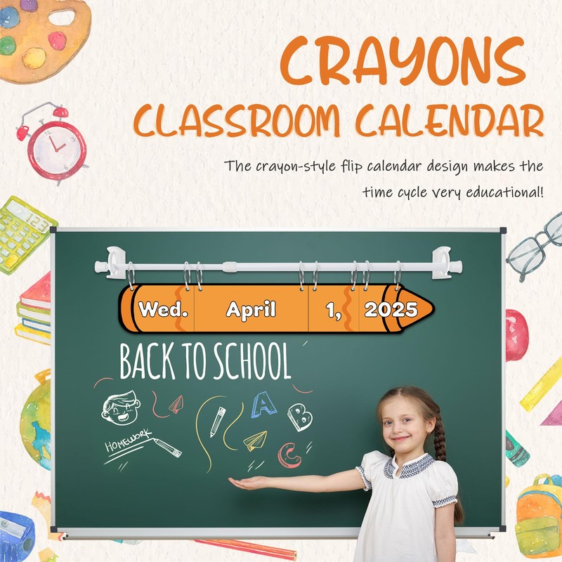 - 🖍️ Crayon Classroom Calendar: Brighten your space with this adorable crayon flip calendar for classroom! Includes 53 durable cards with years, months, days, and dates, 8 metal O-rings, and an adjustable rod (15.7"–27.6"). It’s the perfect mix of classroom decor and practical planning—ready to go straight out of the box!