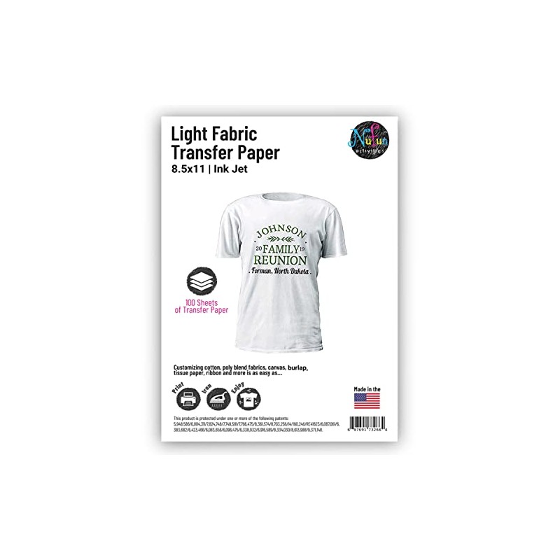 NuFun Activities Inkjet Printable Iron-On Heat Transfer Paper, Light Fabrics, (100 Sheets)