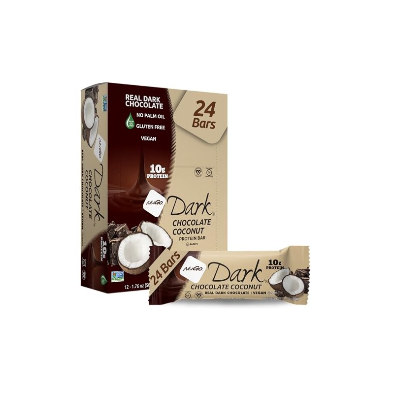 NuGo NuGo Dark Chocolate Coconut, 10g Protein Bar, Vegan, Gluten Free, Non-GMO, Kosher Pareve, 24 Count
