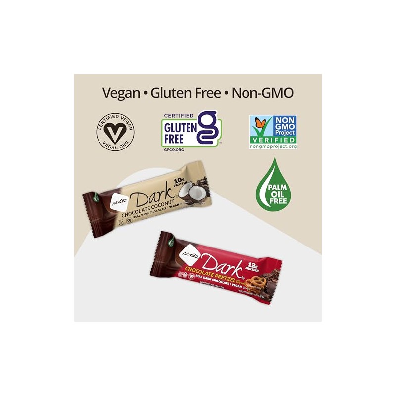 - CERTIFIED VEGAN: NuGo Dark bars are packed with plant protein and are free of any animal products or by-products. Nugo Dark is the perfect certified vegan snack.