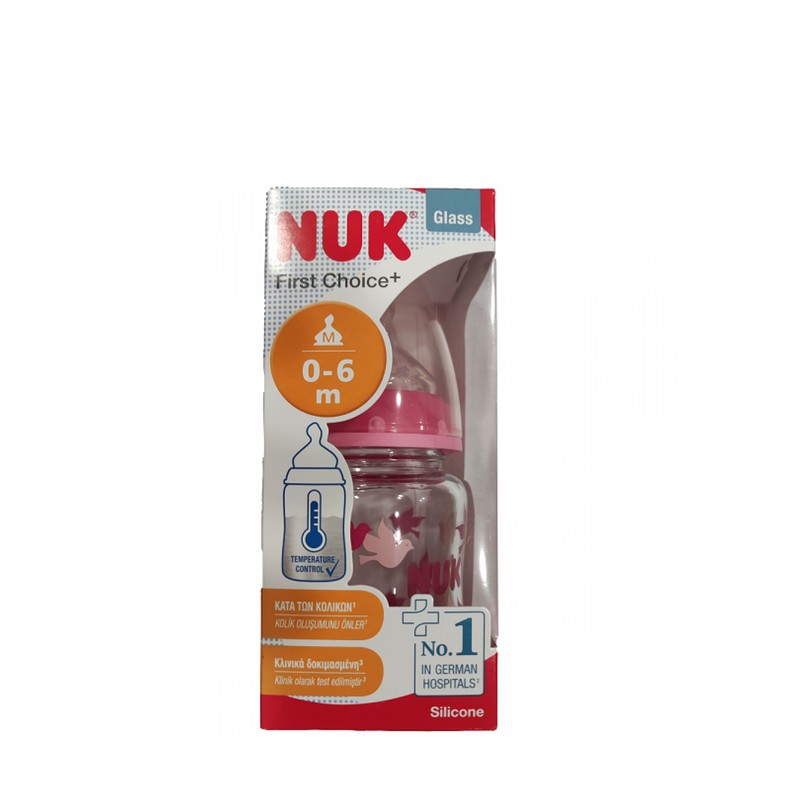 Nuk First Choice Μπιμπερό Γυάλινο με Θηλή Σιλικόνης M 0-6m, 120ml