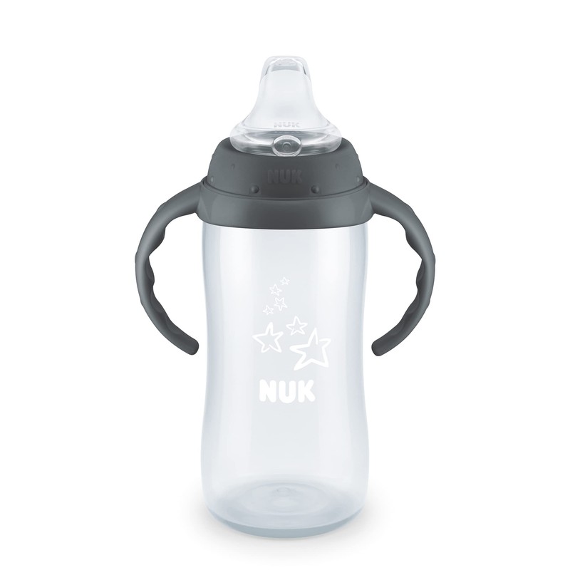 NUK NUK Learner Cup, 10 Ounce, Tritan Gray Star C BPA Free, Spill Proof Sippy Cup