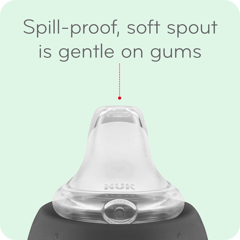• Spill-proof, soft spout is designed to be gentle on gums while teaching baby to drink from a spout. Liquids flow easily when sipped