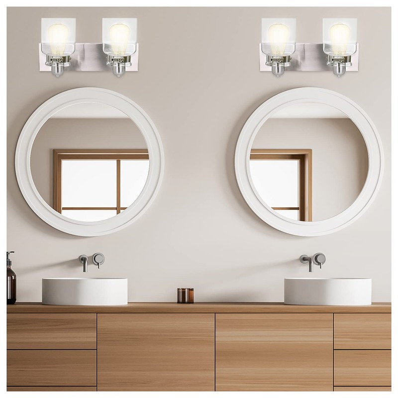 Nuk3y Vintage Farmhouse Bathroom Vanity Light Fixture (Brushed Nickel, 2 Light)