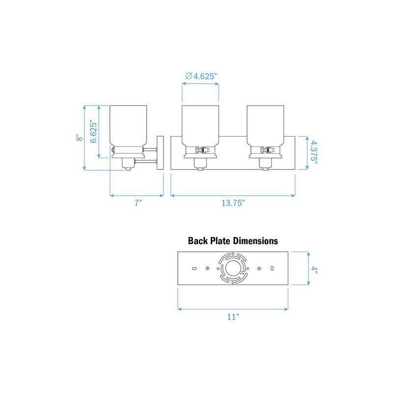- SIZE measures 13.75" width x 4.375" height x 0.75" depth (base) , 13.75" width x 8" height x 7" depth (overall size with glass shade)
