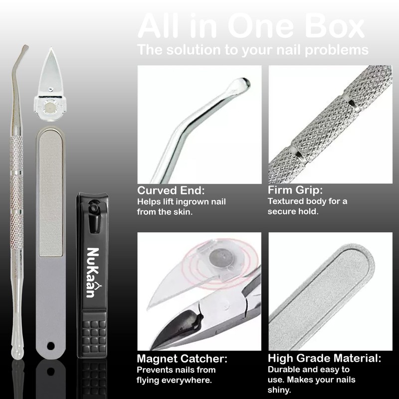 - NuKaan Podiatrist Toenail Clipper: NuKaan toenail clipper is designed for professional use. Our 5 pieces kit includes everything that you need for your hand and footcare. With the help of all our essential tools you will be able to remove any ingrown nail.
