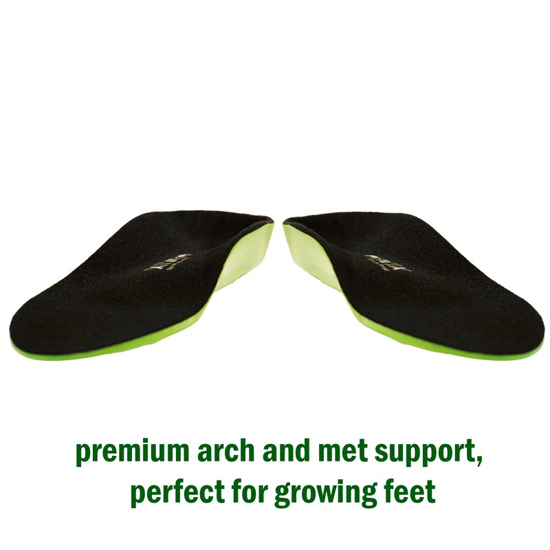 - Premium Arch Support: Soft yet firm arch support helps guide the developing foot & ankle into the most ideal position during growth phases (ages 3-16). Also helps prevent common development conditions such as heel pain, shin splints and juvenile plantar fasciitis.
