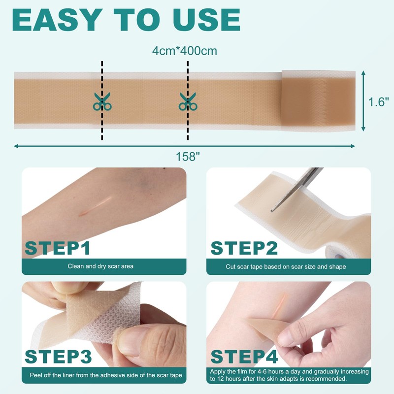 - Advanced Silicone Scar Treatment: Our silicone scar tape is made with soft silicone. Crafted from ultra-thin, breathable and flexible fabric, our scar sheets are virtually invisible on the skin and work to smooth and soften scars by applying gentle pressure, enhancing texture, and promoting a flatter, smoother appearance.