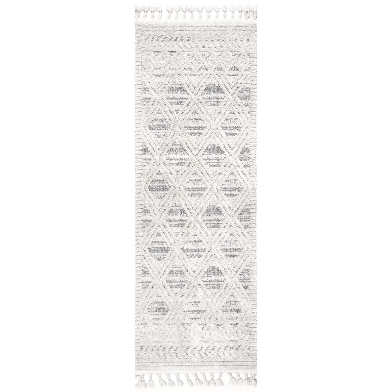nuLOOM 2x12 Ansley Moroccan Tassel Area Rug, Light Grey, High-Low Textured Bohemian Design, Plush High Pile, Stain Resistant, For Bedroom, Living Room, Hallway, Entryway