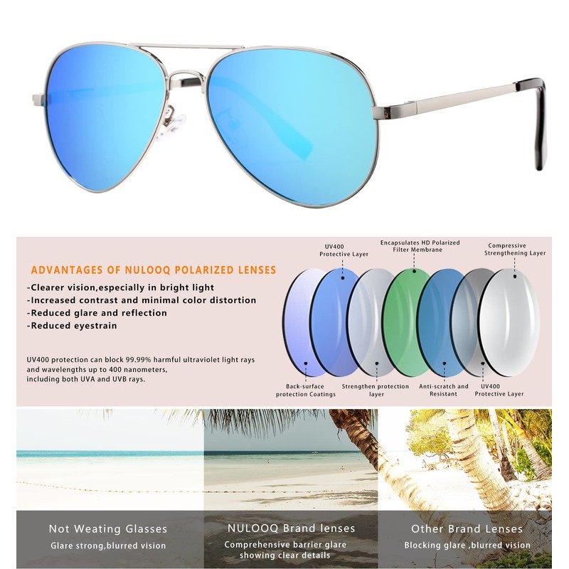 - HIGH-QUALITY MATERIALS - NULOOQ vintage aviator sunglasses are made of high-quality metal materials, colorful flash mirrored reflective UV400 lenses, and spring hinges, all the details ensuring you a long time using