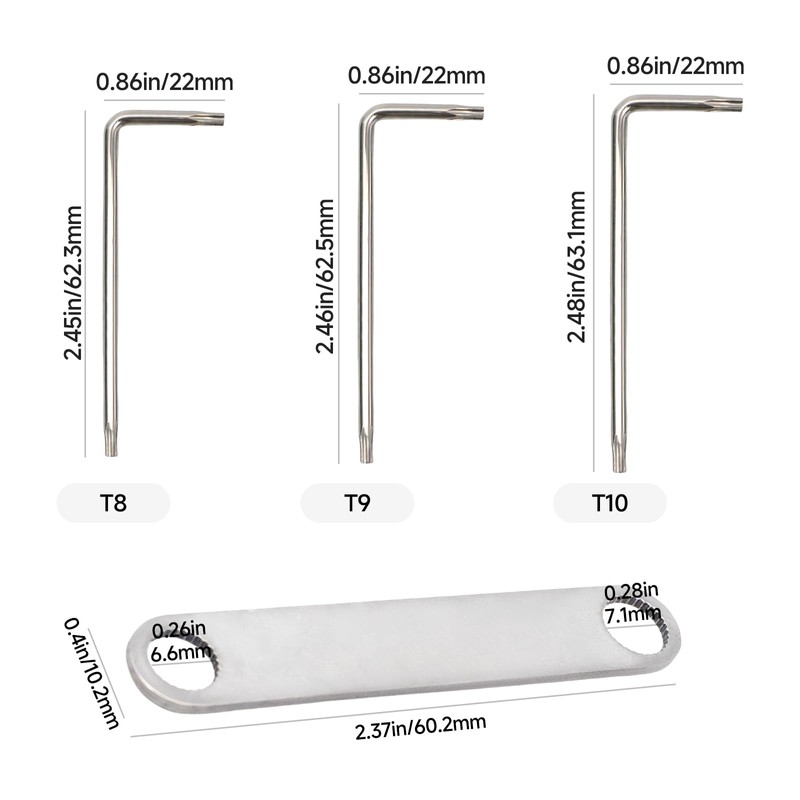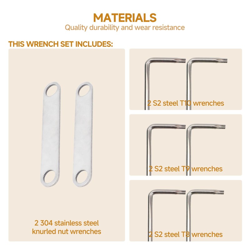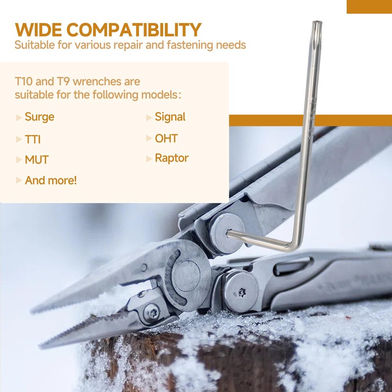- 【Included Products】Wrench set compatible with Multi-Tools,includes 2 304 stainless steel knurled nut wrenches,2 S2 steel T8 wrench,2 S2 steel T9 wrench,2 S2 steel T10 wrenches,suitable for replacement parts removal