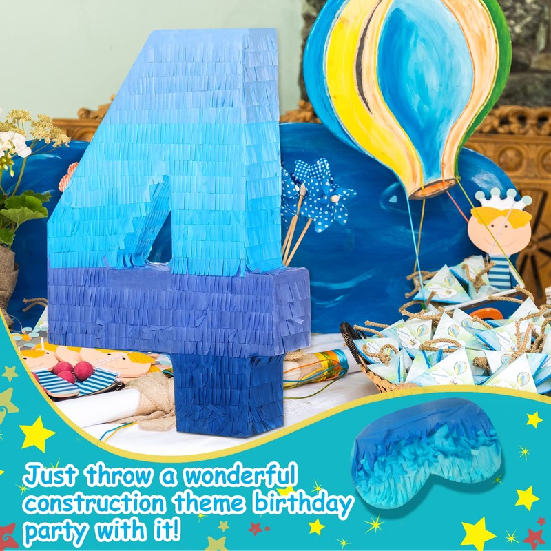 - 4Th Birthday Party Supplies: easily fill the 4 pinata with small toys, candy, chocolate, or confetti, impress your guests with the fun party game at an upcoming kids birthday party with this blue number 4 pinata, fill the pinata and break it