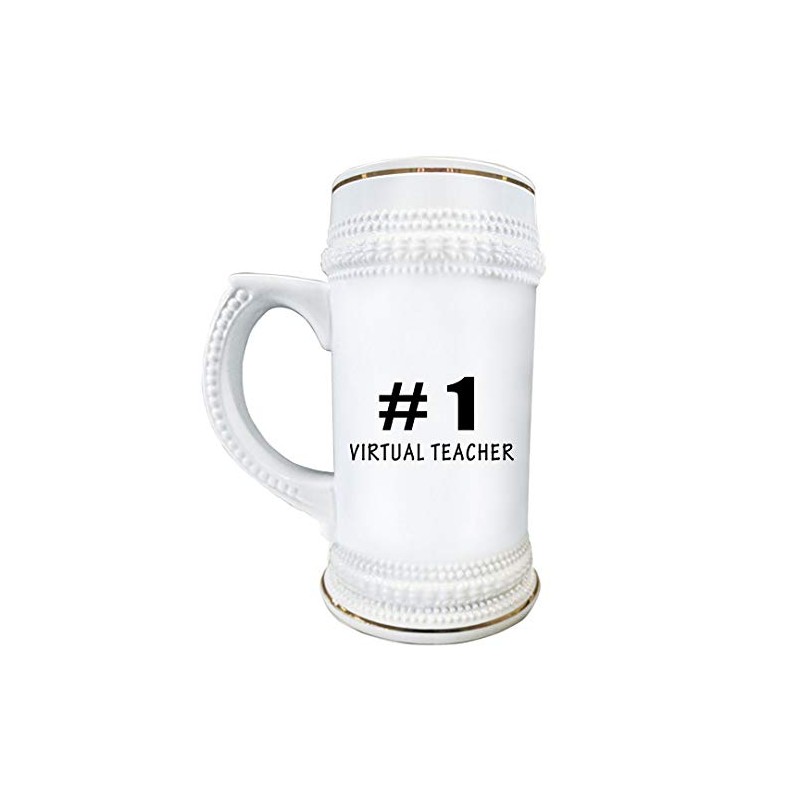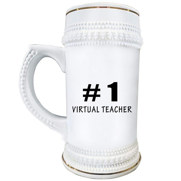 Number 1 Virtual Teacher - Beer Stein Mug 22oz Ceramic Drinkware - Funny Cute Gag Appreciation Recognition Award Gifts Idea for Professor Teaching Assistant Distance Learning School Year Quarantine