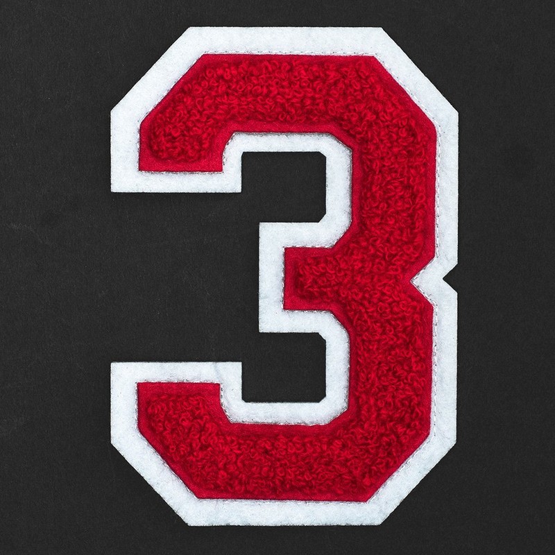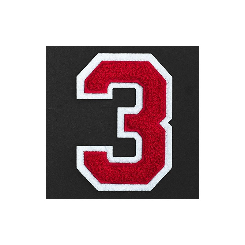 Number 3 - Chenille Embroidery Varsity Iron-On Patch by pc, 4-1/2", TR-11649 (Red/White)