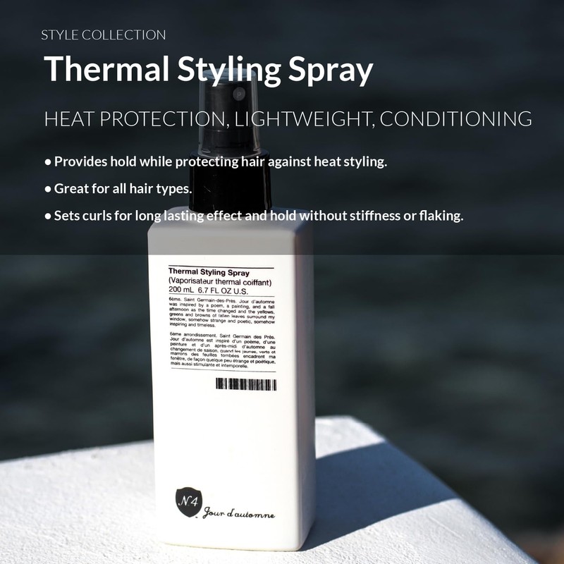- Number 4 Hair Care Thermal Spray 6.7 oz: Your daily defense against hot tool havoc. This humidity-resistant thermal protection spray sets curls and provides astonishing shine and hold without being stiff or flaking. O'lala!