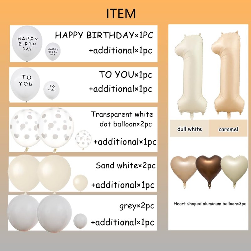- Package: 40 inch Caramel Number 5 Balloon 1PCS,10 Inch "Happy Birthday" and "To You" Balloon 2PCS, 10 Inch Confetti Balloon 3PCS, 10 Inch Cream White Balloon 3PCS, 10Inch Gray Balloon 3PCS; Our birthday foil balloons are made of durable and eco-friendly foil material, The balloons are filled with air and can be reused for many times