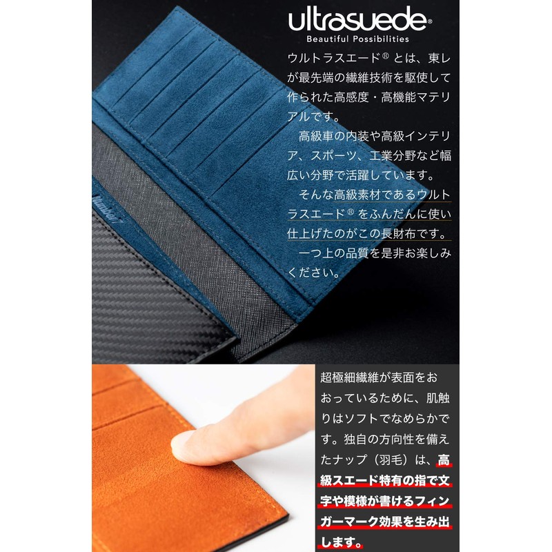 - [Ultra Suede + Carbon Leather] The product uses plenty of premium Ultra Suede fabric developed by Toray using the latest technology.This is an original Number7 wallet designed in accordance with strict consideration of its compatibility with carbon leather.Enjoy its refined texture.