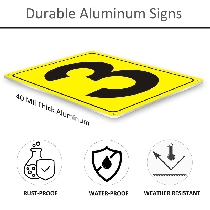 Number Sign 3 for Tennis Court, Numbered Sign for Parking Lots and Public Spaces, 12x8 inches Weatherproof and Easy to Install Metal Signs