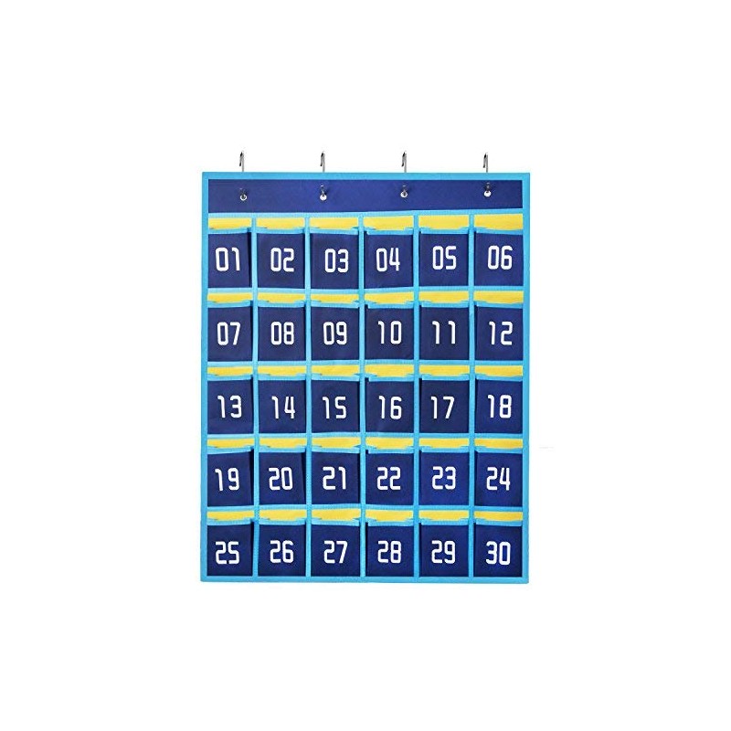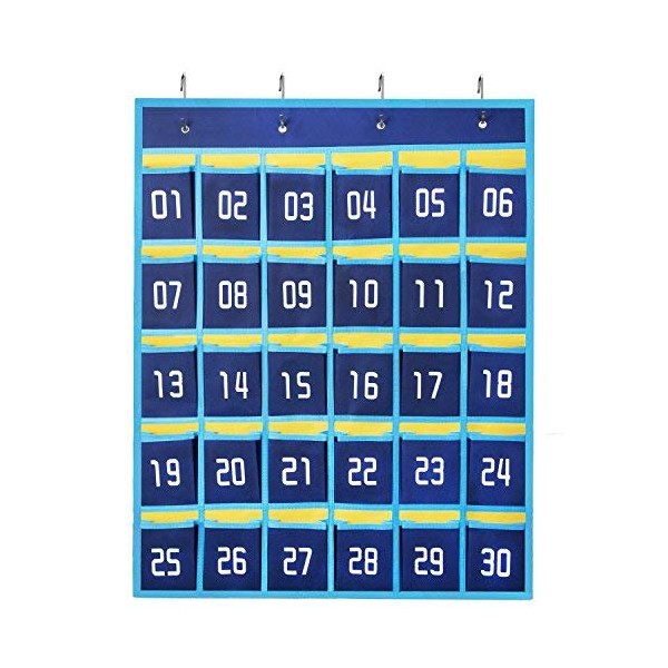 Numbered Classroom Organizer Pocket Chart Cell Phones Holder Wall Door Hanging Storage Bag (Blue, 1 Pack)
