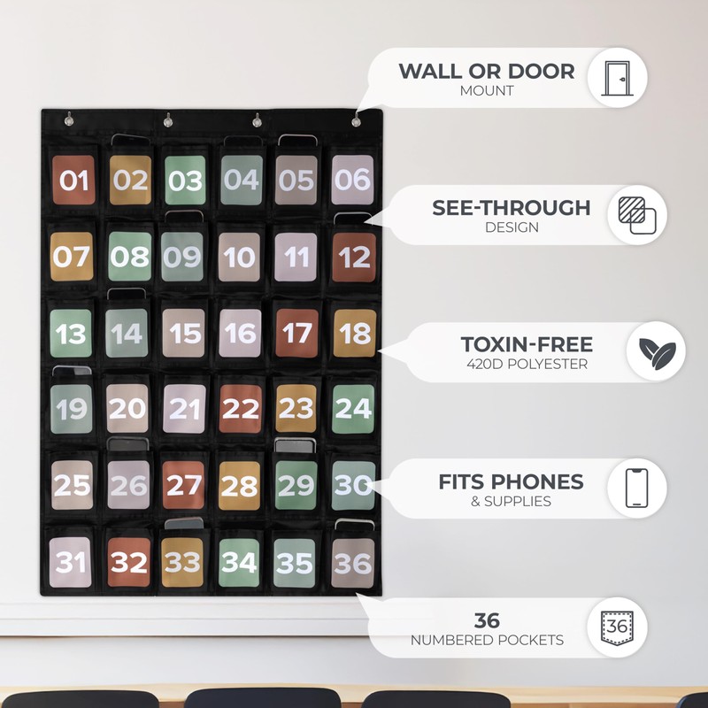• Plenty of Space - Perfect for Any Classroom Size: The generously sized 36-pocket design (36.93x25.98”) ensures that every student has a designated spot. No confusion, no clutter - just efficient classroom management with a clearly numbered cell phone pouch system