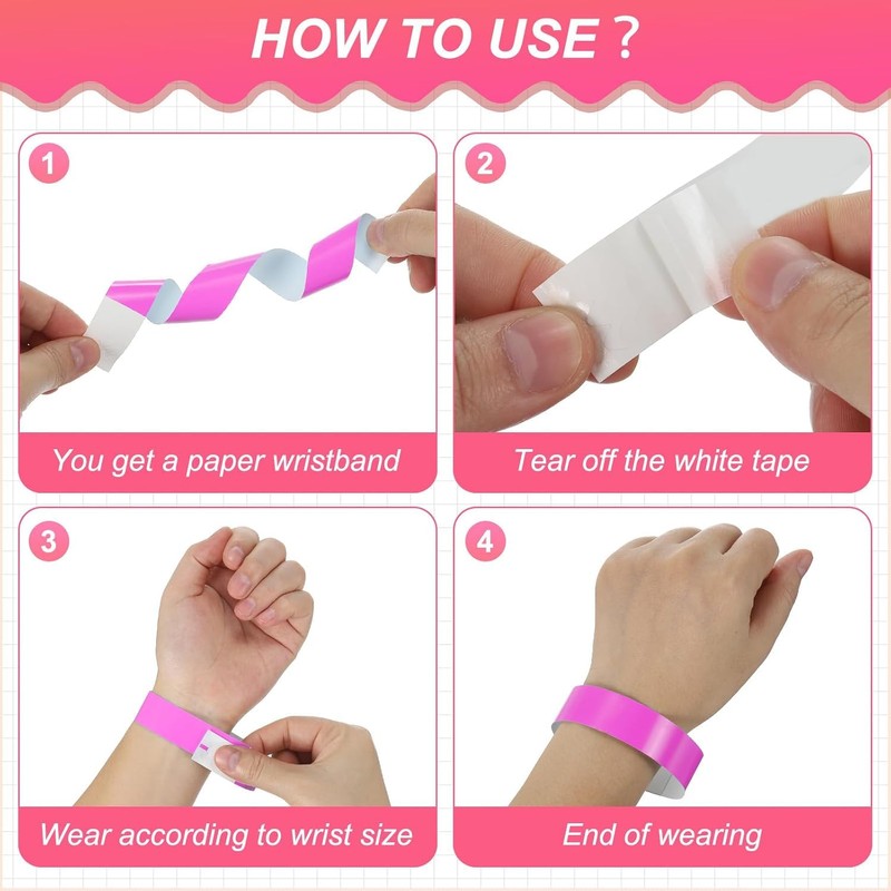 - Waterproof and Durable: Made from quality paper, these wristbands feature clear and bright printing. They are waterproof and sturdy, ensuring they are disposable, fade-resistant, and break-resistant. You can rely on them for any event.