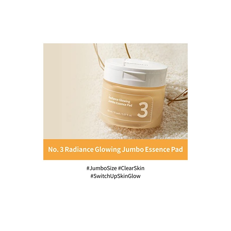 numbuzin No.3 Radiance Glowing Jumbo Essence Pad, 70 Pads / 5.07 fl.oz / 150ml | Jumbo Size Vegan Pad, Radiance, Hydration
