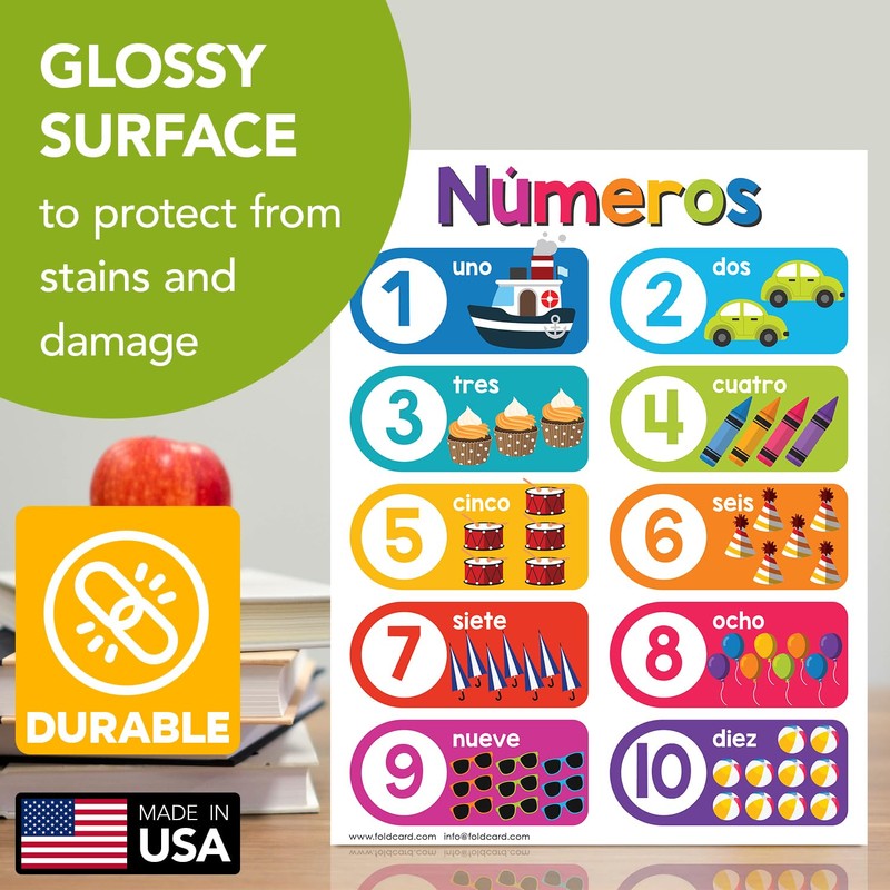 Números 1-10 Spanish Chart for Preschool to Gradeschool Kids – Numbers 1-10 Educational Visual Learning Aid Poster Decoration for Classrooms | Glossy Durable Cardstock | 8.5 x 11 | 5 per Pack