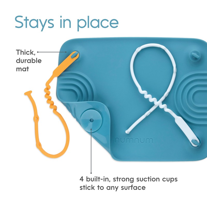 - CONTAIN ANY MESS WITH 4 ATTACHABLE TETHERS: Embrace the exploration phase of your little one’s mealtime journey. Our innovative tethers encourage babies and toddlers to try new mealtime tools all while neatly containing them on the mat so you don’t have to constantly rinse every little thing they toss. The result? A more confident eater and cleaner floors