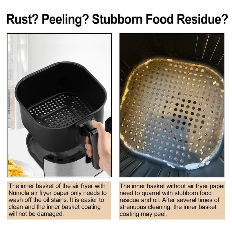 Numola liners for air fryer are made of 100% food grade pulp, non-stick, non-toxic, safe and sturdy.