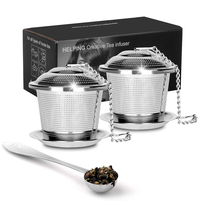 • ✅ Gift Choice: This stainless steel tea ball can be used for all types of loose leaf tea or spices. Each tea strainer set includes 2 medium loose leaf tea infuser + 1 spoon & 2 drip trays. It's good kitchen gadget for cooking meat or soup. It's a great choice for Christmas, wedding, party, mothers day, fathers day, grandparents, tea lovers, birthdays.