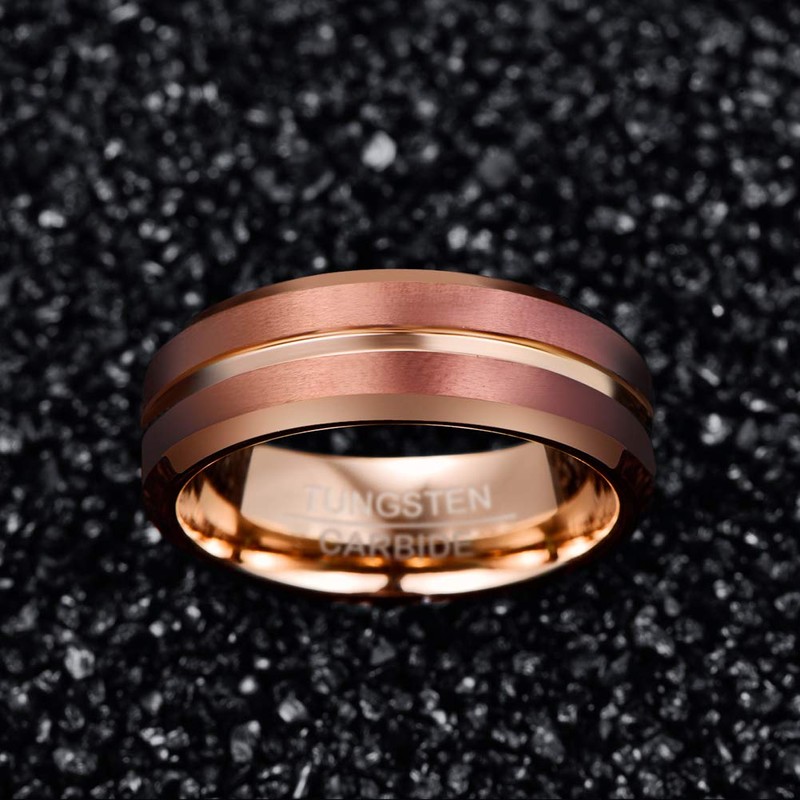 - Design: Classic 8mm mens rings with rose gold polished interior & brown matte finish exterior, high polished center groove and beveled edges, comfortable for everyday wear