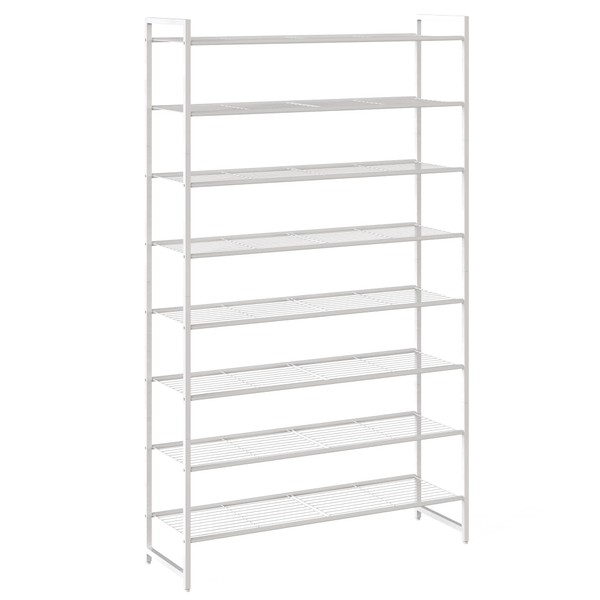 Nunsino Shoe Rack, Metal Shoe Organizer, 8 Tier Garage Shoe Rack Max Holds 40 Pairs,Shoe Storage shelf for Closet,Entryway, White