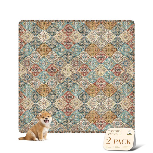 nunubaby 2PACK Washable Pee Pads for Dogs, Stylish, Non-Slip and Leak-Proof Pee Pads. Reusable Potty Pads for Dogs for Crates and Floors.(Cream/Multi, 72" x72" )