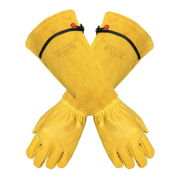 Nuo Wen Heavy Duty Long Leather Garden Gloves Thorn and Cut Proof Garden Work Gloves (Yellow 2, Small)