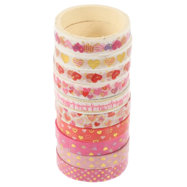 NUOBESTY 10rolls Valentine's Day Washi Tape Love Heart Patterns Decorative Paper Tapes for Scrapbooking Projects Wrapping and for Journals and Handbooks