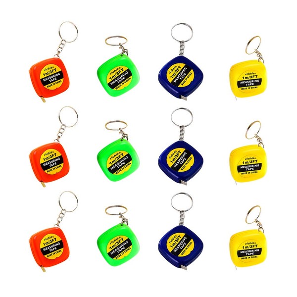 NUOBESTY 12 Pieces Tape Measure Key Ring Mini Retractable Tape Measure Key Ring for Children Birthday Party Favours