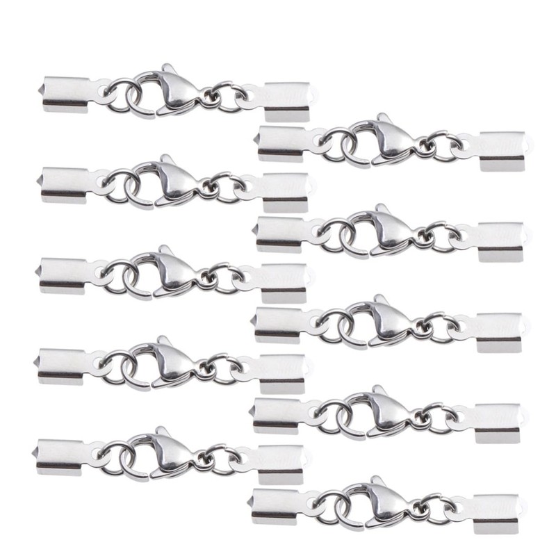 NUOBESTY 60 Pcs Necklace Clasp Lobster Bracelet Clasps Jewelry Making End Caps Stainless Steel s Hooks Heavy Duty Hook Swivel Hooks End Caps with Lobster Clasp DIY Leather Rope Lobster Hook