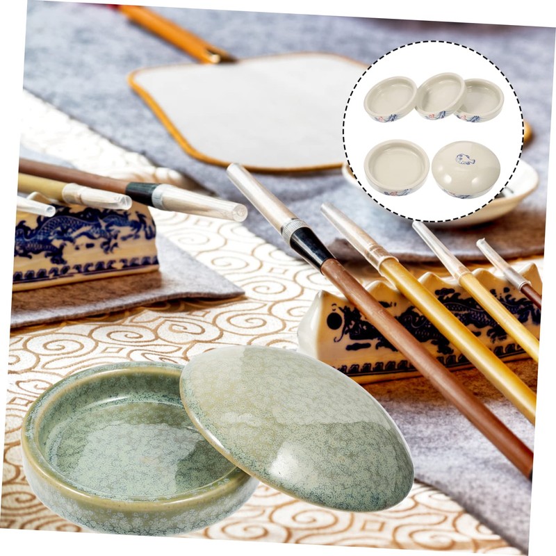 • For painting-- porcelain ink paint dish 5 layer ceramic stackable paint mixing trays round watercolor set for artists students holding painting color