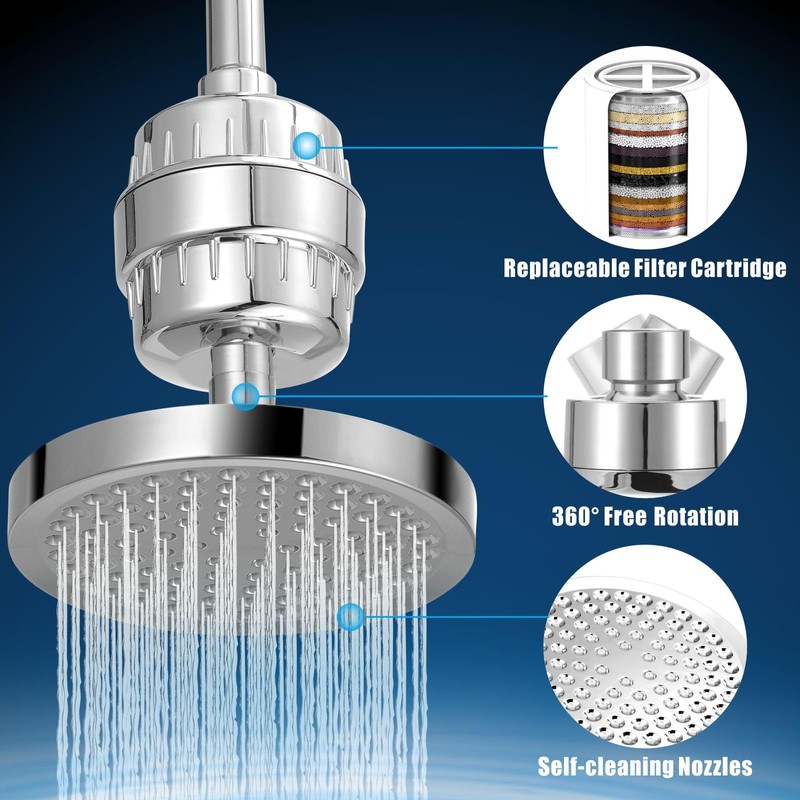 - SAY GOODBYE TO CLOGGED SHOWERS - If the water contains minerals or other impurities, the shower nozzles can easily become clogged. But the shower heads with a filter can easily avoid this problem, the filter can block calcium carbonate and other particles in the water, and you will no longer have to worry about clogged showers.