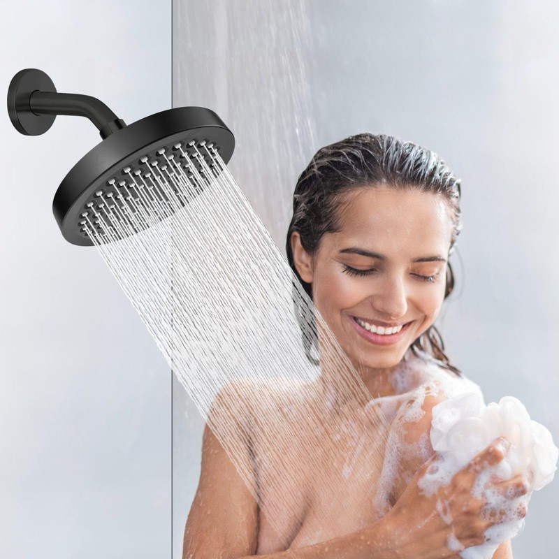 Nuodan Shower Arm with Flange, 6 Inches Wall Mount Replacement Shower Head Arm For Fixed Shower Head and Handheld Showerhead, Matte Black