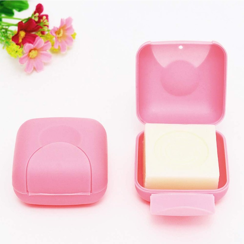 NUODWELL 2 Pack Travel Soap Dishes, Waterproof and Leak Proof Square Small Soap Dish with Sealed Portable Accessories for Home and Outdoor Use (Pink)