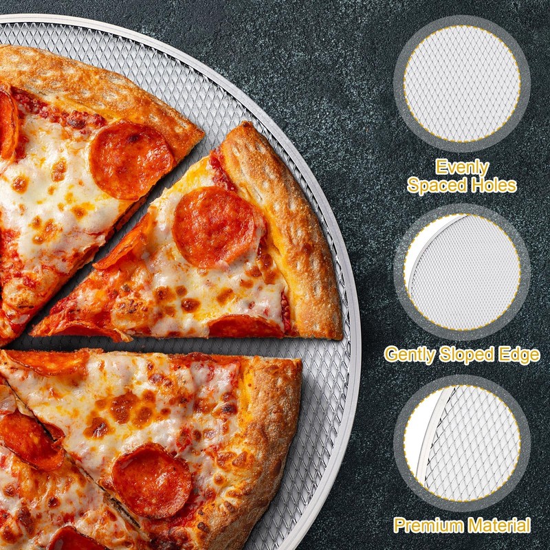 - Wide Application: featuring a mesh surface and seamless design, this round pizza mesh screen is not only suitable for fresh and frozen pizza, but also suitable for baking bread or cakes in and out of the oven, it is an ideal tool for home kitchen, restaurant, pizzeria, outdoor barbecue, family gathering, housewarming party, birthday party, banquet, and many other occasions; It fits for preparing, baking, easily cools your snacks so you can enjoy delicious meals soon