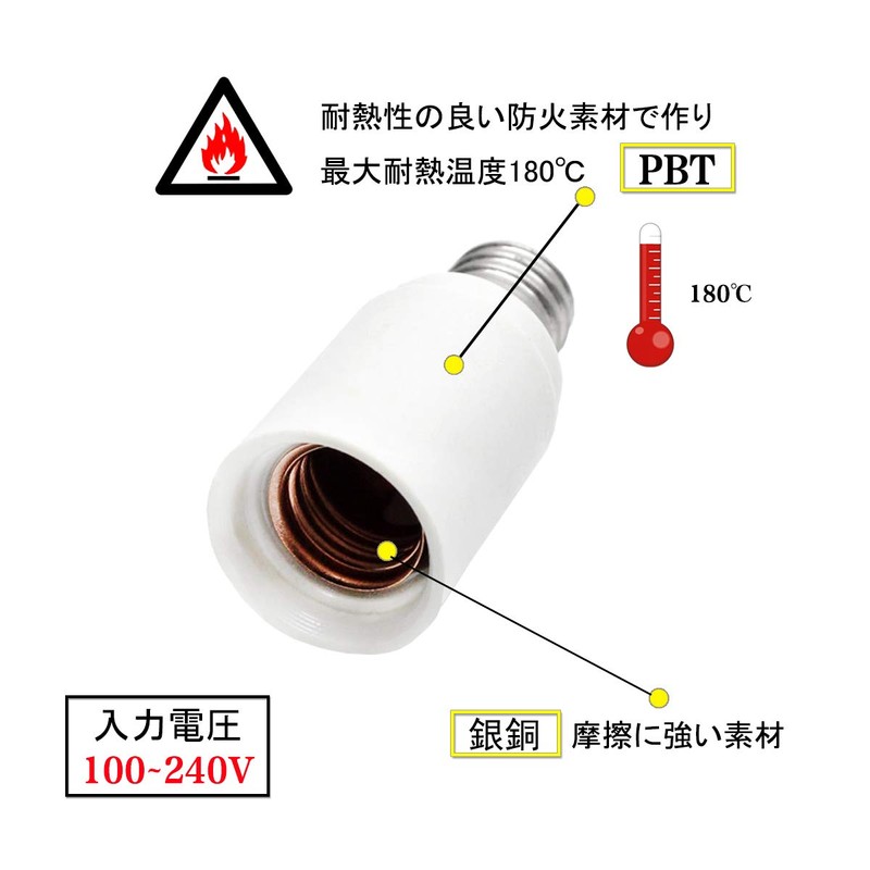 - Specifications: φ0.7 x H 1.6 inches (18 x 40 mm); Imported Voltage: 110 V; Compatible LED Bulbs: 0 - 100 W; Maximum Heat Resistance: 176 - 488°F (80 - 200°C)