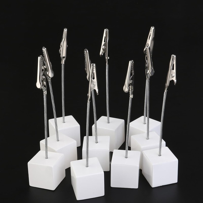 Cet article is an ensemble of 10 pieces notes clips de support de paper, qui sont faites de résine et de l'acier inoxydable, merveilleux porte-documents de bureau avec base de cube translucide et pince crocodile. Parfait pour écrire des tâches de bureau inattendues et parfait pour la maison ou au bureau avec un espace limité.