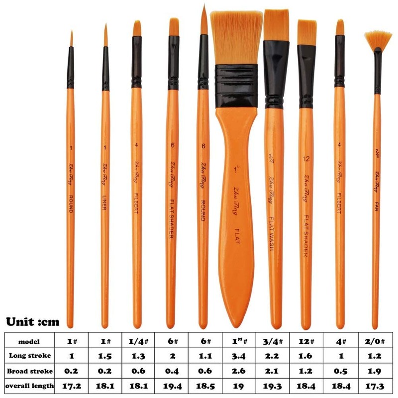 - Idea Gift:This Acrylic Paint Brush Set is a great introduction to professional artist supplies. Artistic painting with acrylic colours is a lot of fun with this set and can be done in no time
