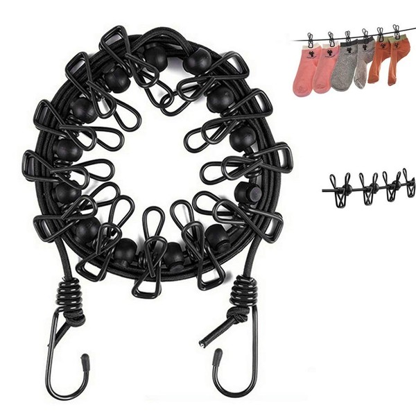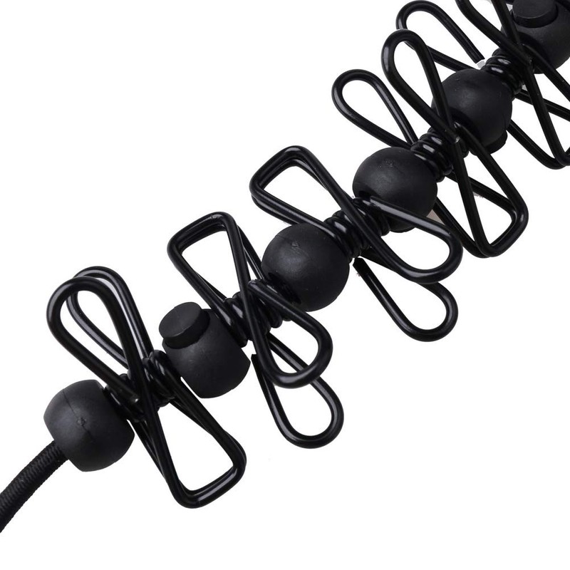 - SECURE The 12 black clips of the clothesline keep clothes secure, and the 13 cord locks prevent the clips from moving back and forth on the line.
